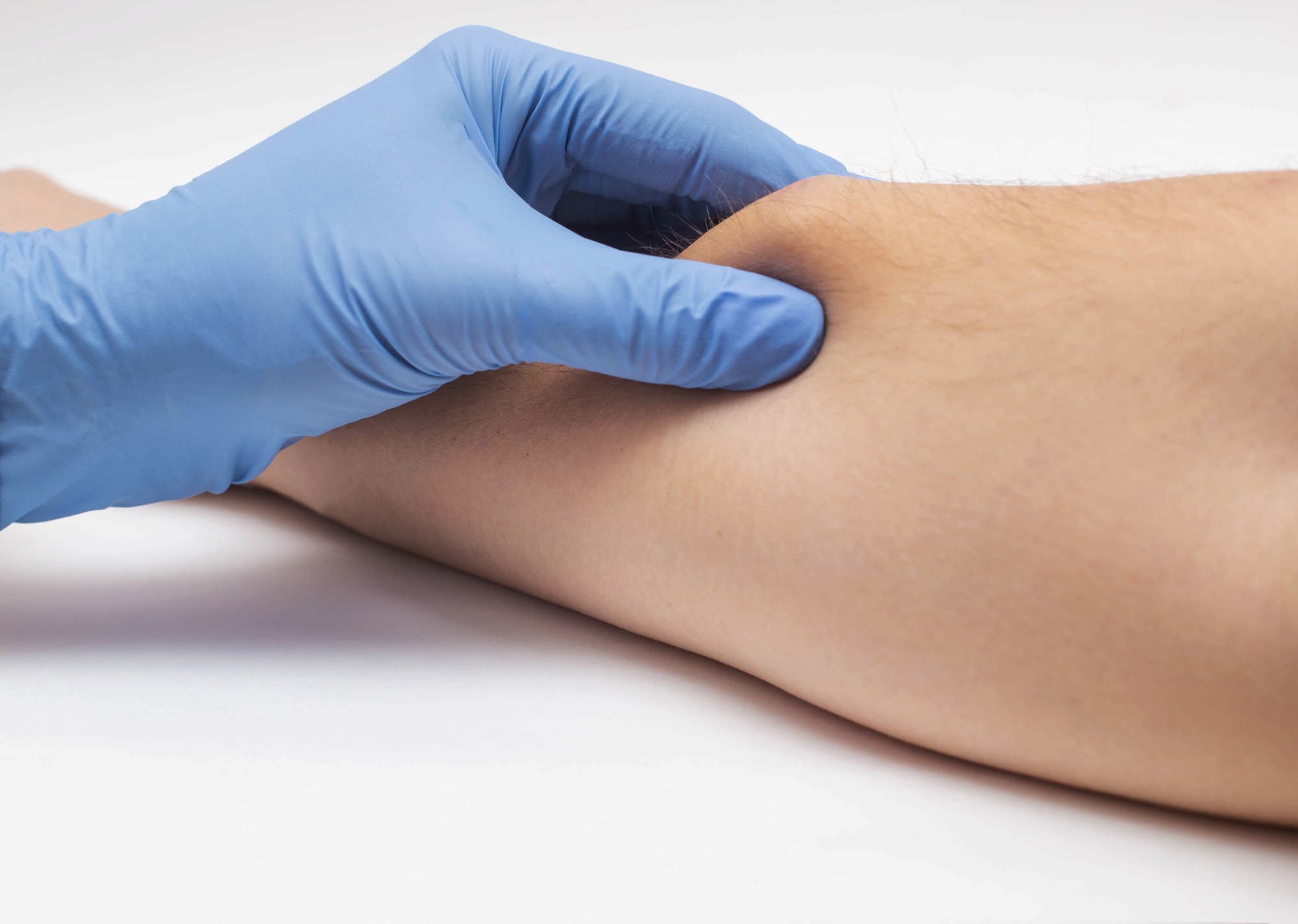 Main d un professionnel tenant une lipome dans le brat d un patient - Lipome | Centre Villiers Batignolles Paris